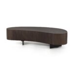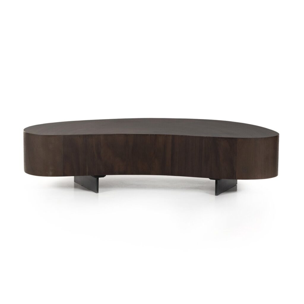 Kidney-Shaped Oyster-Cut Guanacaste Coffee Table — Smoked Wood & Gunmetal